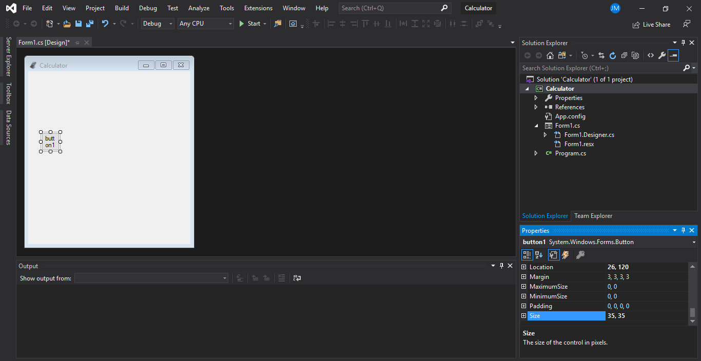 In the Right side of the window you can see the Properties box. Go to the properties and change the Text Form1 to Calculator